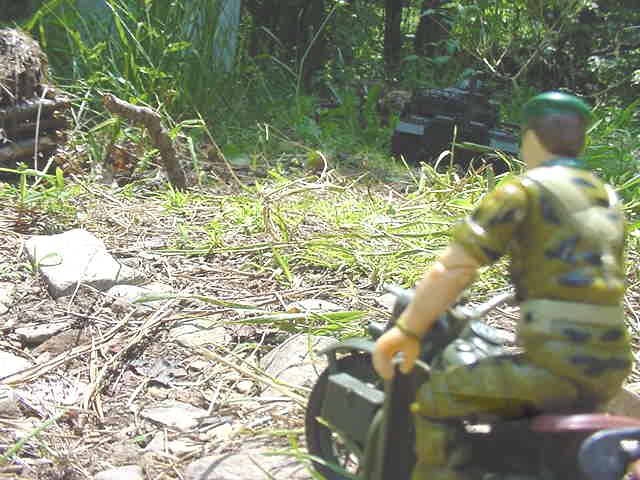 P60. Bruce-"Ah Ha! That is how I can do it" P61. The tank makes it's way down an ally, when.. P62. Bill's Bulldog comes on down the road.. Bill-"There's the Patton.." P63. Bill-"Try to knock it out" Gunner-"I can't get a clear shot!" P64. Gunner-" I think I got one..." |