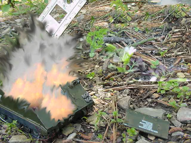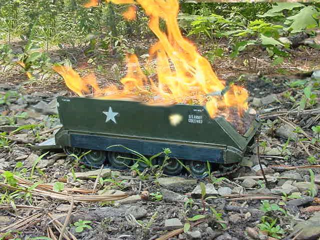 P52. He zips around the back. P53. BOOM... P54. A direct hit. the round ignites the gasoline and the M113 is blown to pieces!
