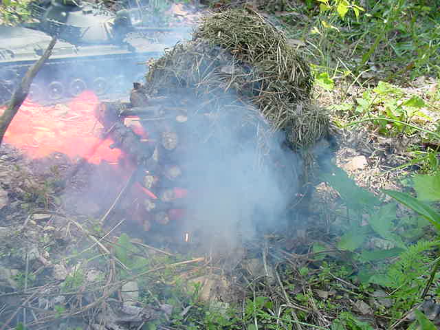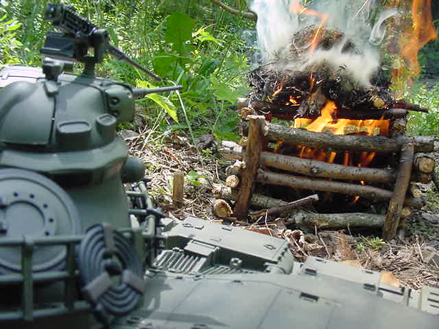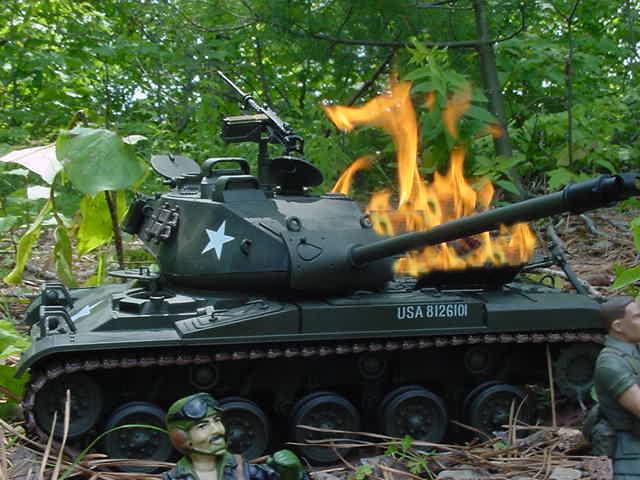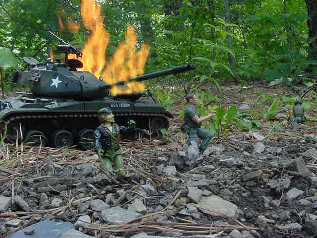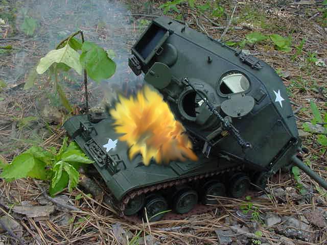 P66. BBLLAAMM.. P67. But the round misses the M48 and hits one of the houses.. BBBAAAMMM P68. The house Ignites on fire while inside the M48 Wang reloads the cannon. P69. Wang aims at the Bulldog.. Wang-"Kai Slow Down" P70. Bill-"Crap He's going to fire.. Evasive maneuvers" VVVRRRROOOMMM P71. KAABBOOMM.. P72. BBBBLLLLAAAMMM The Bulldog turns and the round slams into the engine.
