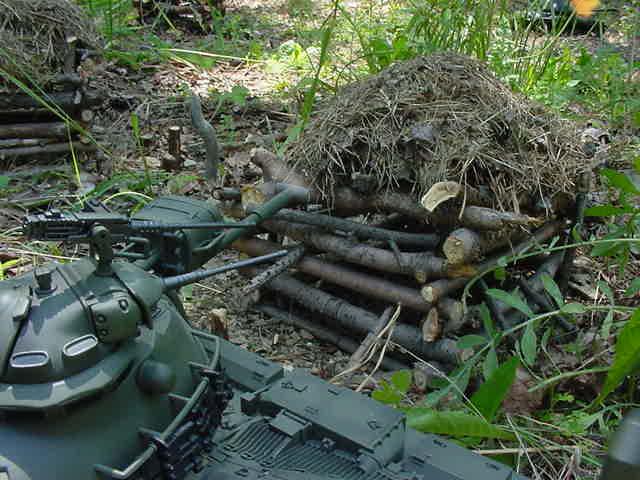 P74. Wang reloads the cannon and is planning to finish off the Bulldog when the tank clears the hut.