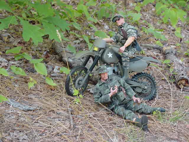 P46. The Mig tries to launch more flares, But runs out! P47. Pilot-"OH NEIT!" P48. BBBBBBBBBOOOOOOOOOMMMMMMMMM! P50. The Hummer emerges from the foliage. Duke-"Thanks Falcon All clear". P51.Larry-"That was a ride!" Josh-"I don't seem to have any other holes in me!" P52. Josh goes back inside the Hummer. Duke-"Alright now we have to meet back up with the other guys! That was a close call, But will their luck run out? Tune in for the last chapter of Sniper Team Delta, Escape part 2, The Final Push.